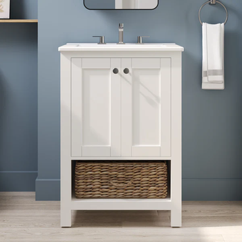 Modern White Water Resistant Solid Wood Bathroom Vanity Cabinet with Lacquer Finish and Ceramic Basin