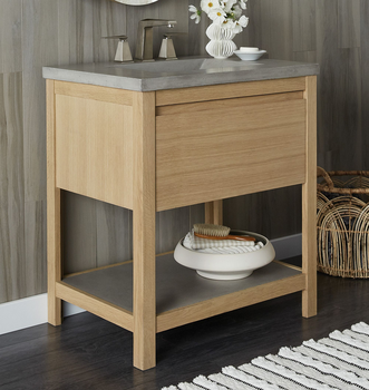 Mueble de Baño Moderno de Madera Maciza Resistente al Agua con Acabado Lacado y Lavabo de Cerámica