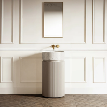 Meuble-lavabo de salle de bain moderne en contreplaqué sur pied avec finition laquée résistante à l'eau, ensemble de meuble-lavabo pour appartement