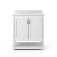 Durable White Solid Wood Vanity Floor Standing Water Resistant Luxurious Bath Cabinet